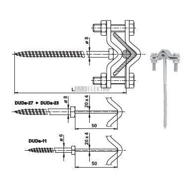 Materiál: U varianty DUDa-18 Cu, DUDa-22 Cu, DUDa-23 Cu a DUDa-27 Cu je vrut nerezový. U varianty DUDa-11 je rozměr vrutu průměr 6/50mm.