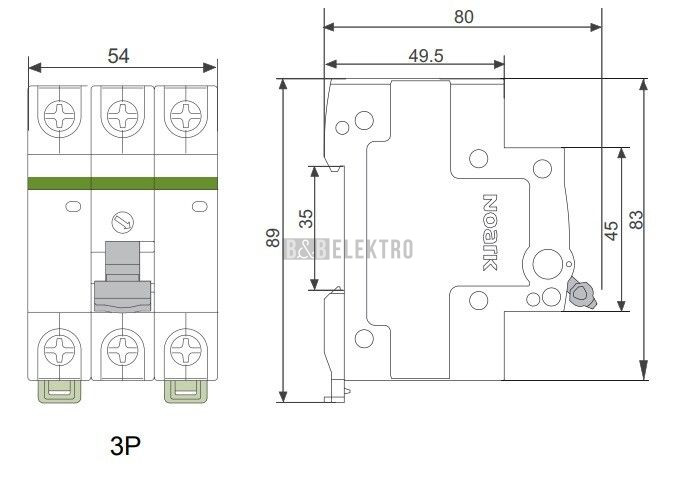 Instalační vypínač, šířka 3 moduly, 3pól, 80A Ex9I125 3P 80A Noark