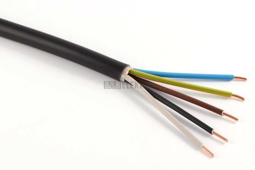 Instalační měděný kabel kulatý CYKY-J 5x2,5 (CYKY 5Cx2,5), barevné označení žil žlutozelená-modrá-hnědá-černá-šedá