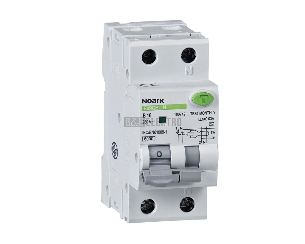 Proudový chránič s jističem 16A, Ex9BL-N 1P+N B16 30mA AC dvoupólový Noark 107622