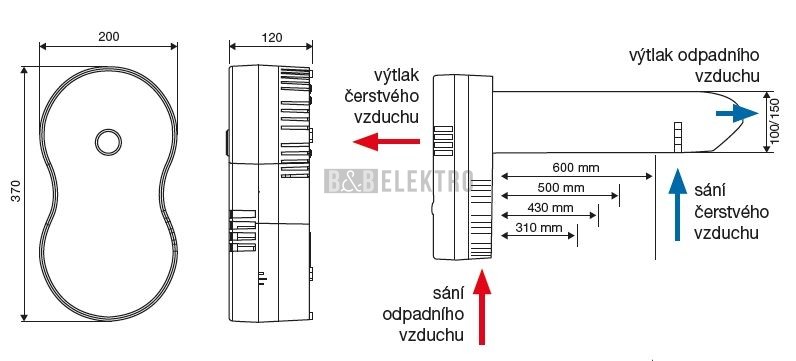 ECO ROOM 150/430 malá rekuperační jednotka s napájecím napětím 230V
