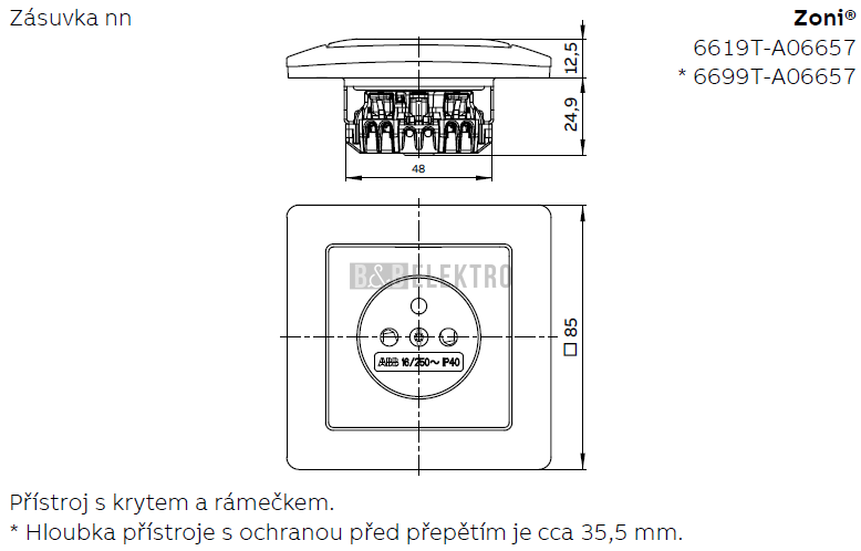Zoni® zásuvka jednonásobná s clonkami a ochranou před přepětím 6699T-A06657 237 matná černá ABB