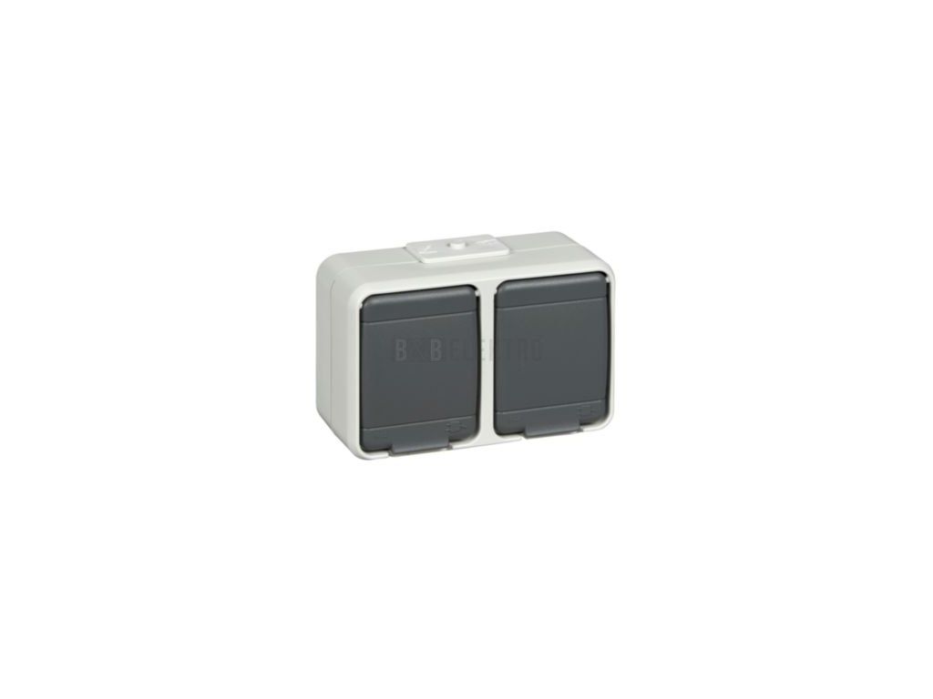 455409 Zásuvka s ochr.kontaktem dvojnásobná vodorovná, sv.čedičově šedá schneider