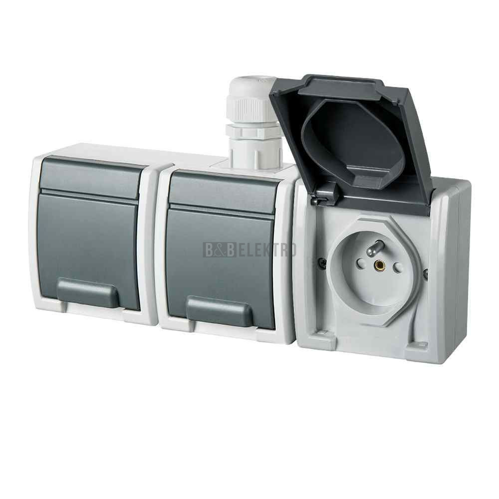 ATLAS IP65 Zásuvka 3x 2P+PE, 3-násobná vodorovná s vývodkou M20, na povrch, šedá typ 19184