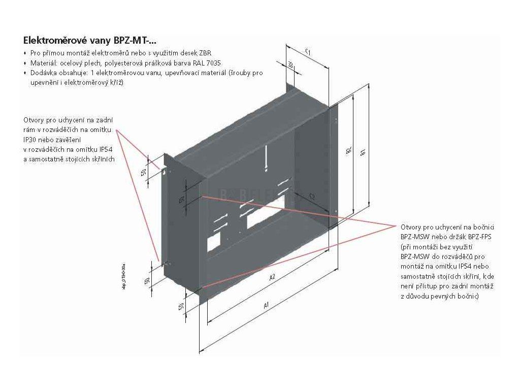 • Dodávka obsahuje: 1 elektroměrovou vanu, upevňovací materiál (šrouby pro