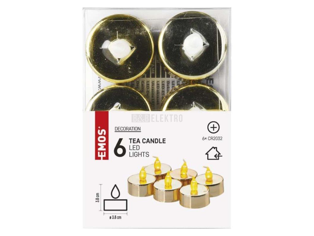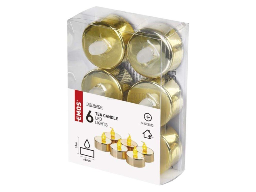 Čajová svíčka LED, zlatá, set 6ks (cena za kus), baterie CR2032, EMOS DCCV13