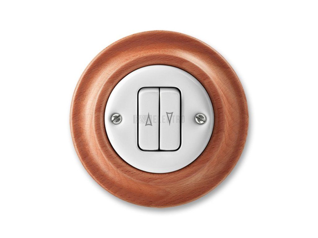Porcelánový ovladač žaluziový ABB Decento v retro stylu, bílá barva / přírodní dřevo třešeň