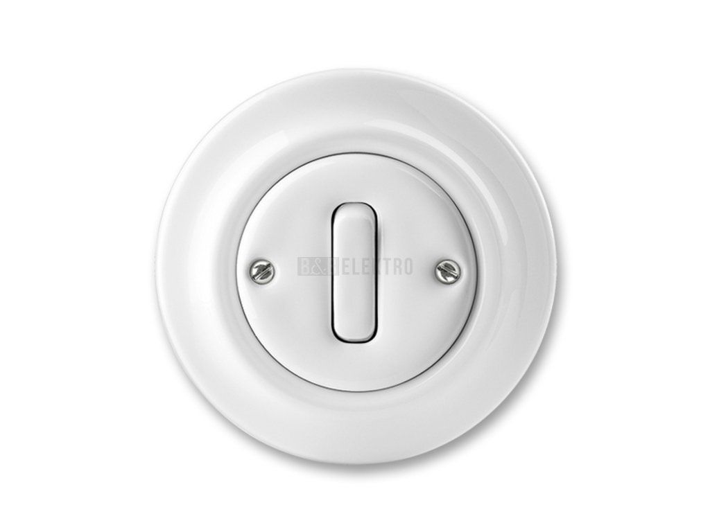 Porcelánový vypínač č.6 ABB Decento v retro stylu, bílá barva