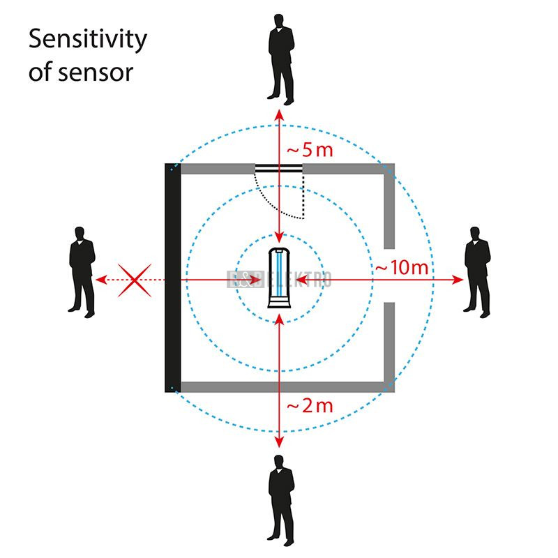 Pokud je trubice zapnuta, mikrovlnný senzor nepřetržitě monitoruje okolí. Když zaznamená pohyb osob nebo zvířat, trubice zhasne, zazní krátký zvukový signál, rozblikají se všechny kontrolky a časovač bude pozastaven. Pokud během 20 vteřin není detekován žádný další pohyb, trubice se znovu rozsvítí a časovač pokračuje v činnosti, dokud neuplyne původně nastavený čas.