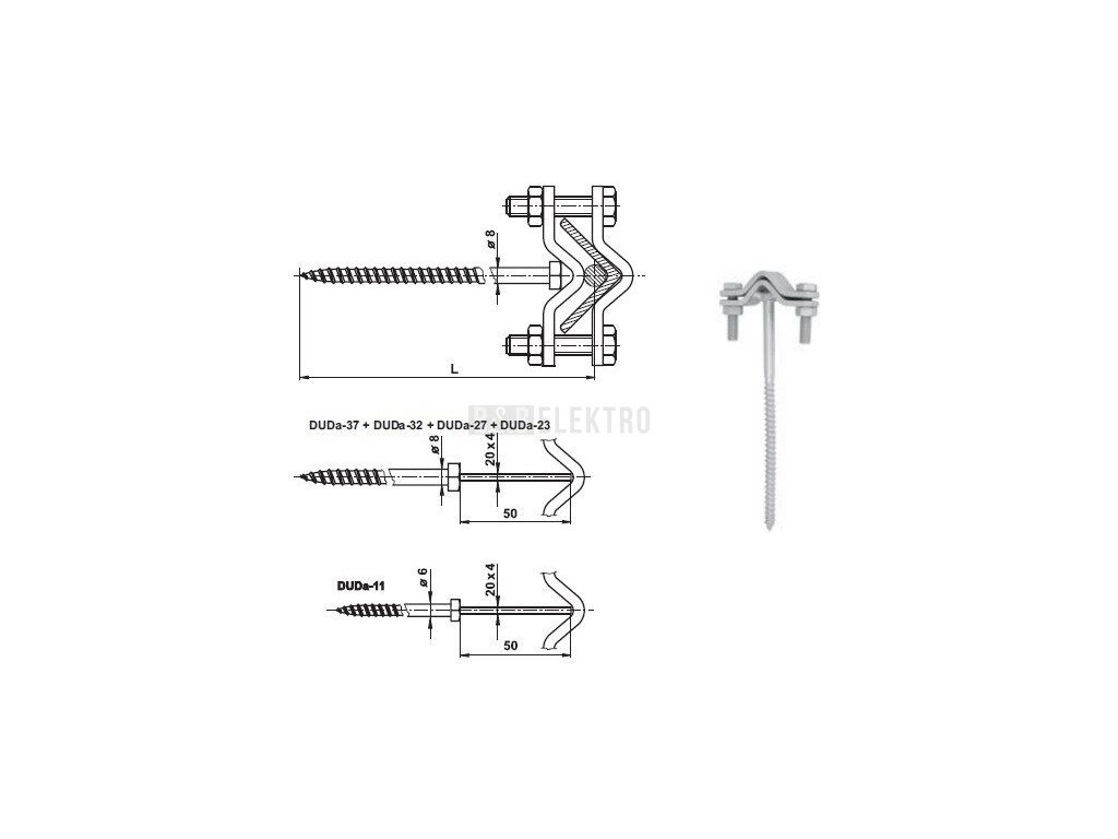 Materiál: U varianty DUDa-18 Cu, DUDa-22 Cu, DUDa-23 Cu a DUDa-27 Cu je vrut nerezový. U varianty DUDa-11 je rozměr vrutu průměr 6/50mm