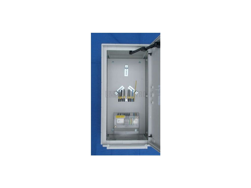 Elektroměrový rozvaděč v provedení z Termoplastu pro jeden jednotarifní třífázový elektroměr pro měření do 40A (popř.50-100 A - musí být uvedeno v objednávce - použití větších průřezů při drátování). Je určen pro zabudování do výklenku ve zdi. Jistič není součástí rozvaděče.Přístroje na elektroměrové desce s plombovacím krytem jističů. Monolitické provedení=menší rozměry skříně.