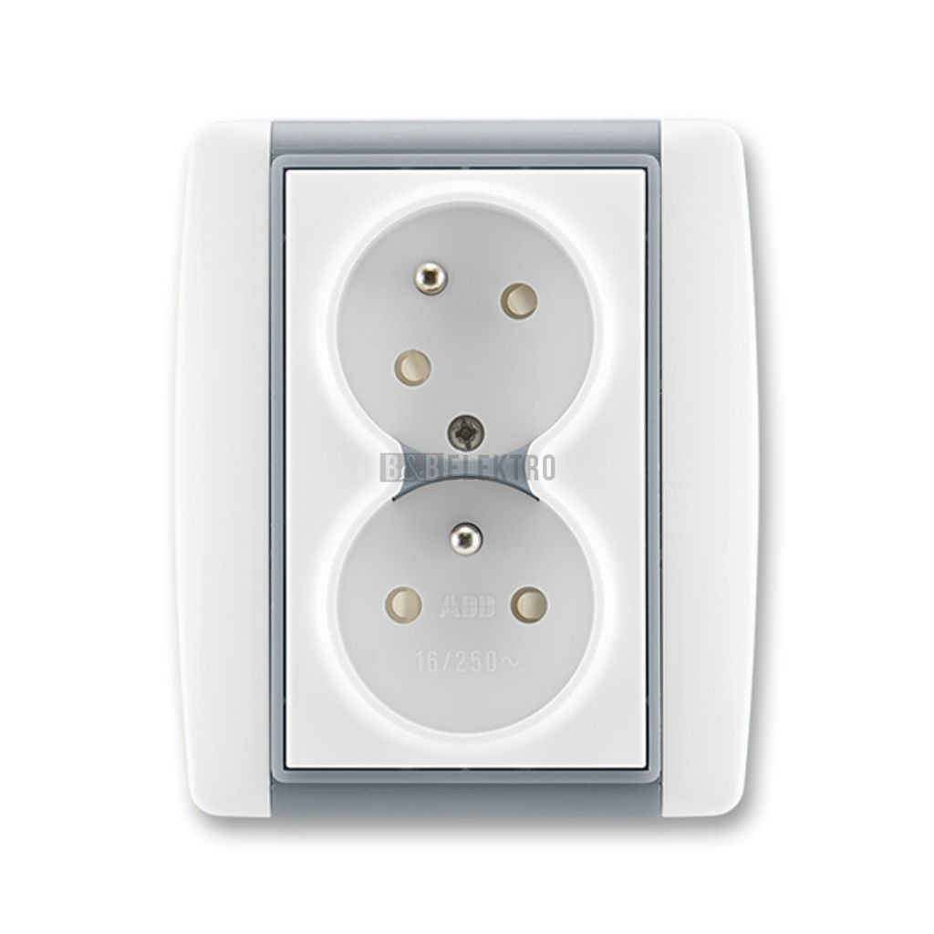 Element® zásuvka dvojnásobná s ochrannými kolíky, clonkami, natočenou dutinou 5513E-C02357 04 bílá/ledová šedá ABB