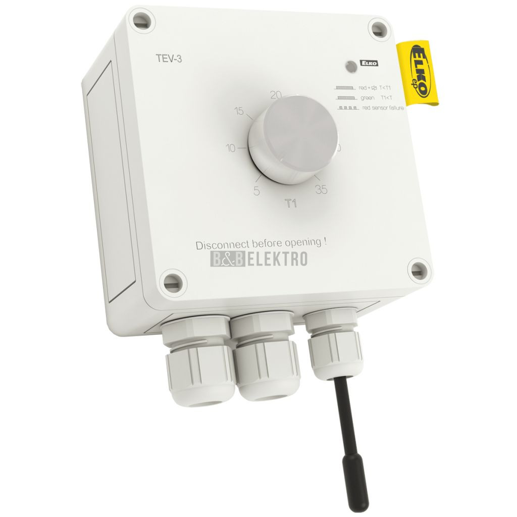 Jednoúrovňový termostat TEV-3 s rozsahem +5 až +35 °C ve zvýšeném krytí Elko EP