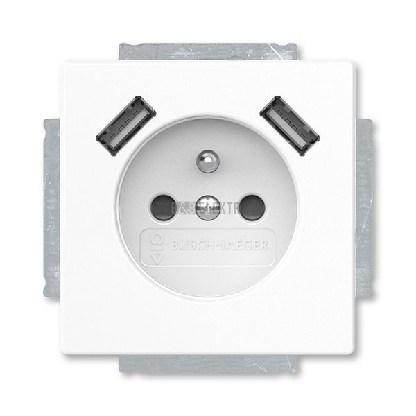 Future® linear, Solo®, Solo® carat, Busch-axcent® zásuvka jednonásobná s kolíkem, s clonkami, s nabíjením 2xUSB-A 2CKA002017A1891 studio bílá ABB