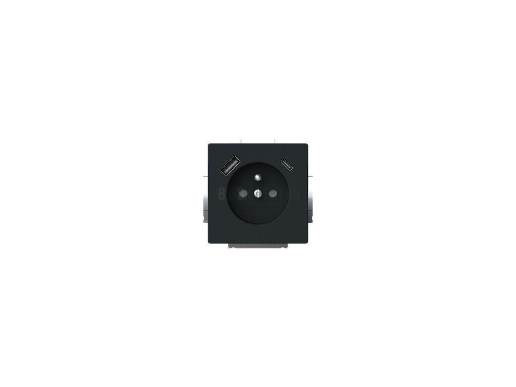 Future® linear, Busch-axcent® zásuvka jednonásobná s kolíkem, clonkami a nabíjením USB-A, USB-C 2CKA002017A1919 mechová černá ABB