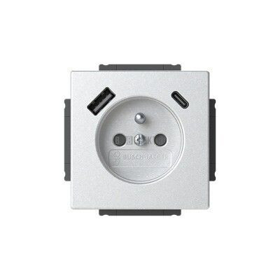 Future® linear, Busch-axcent® zásuvka jednonásobná s kolíkem, clonkami a nabíjením USB-A, USB-C 2CKA002017A1915 hliníková stříbrná ABB