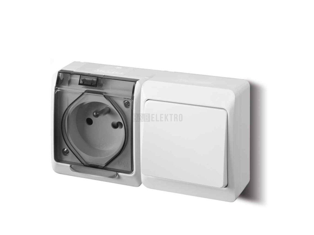 GALATEA 5327-11 IP44 Přepínač střídavý č.6 + zásuvka 2P+PE (bílá / průhledné víčko).
