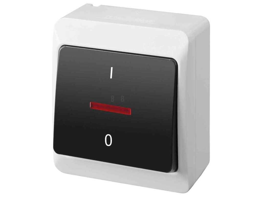 GALATEA 5343-01 IP44 Spínač dvoupólový podsvětlený č.2So (bílá / kolébka černá).
