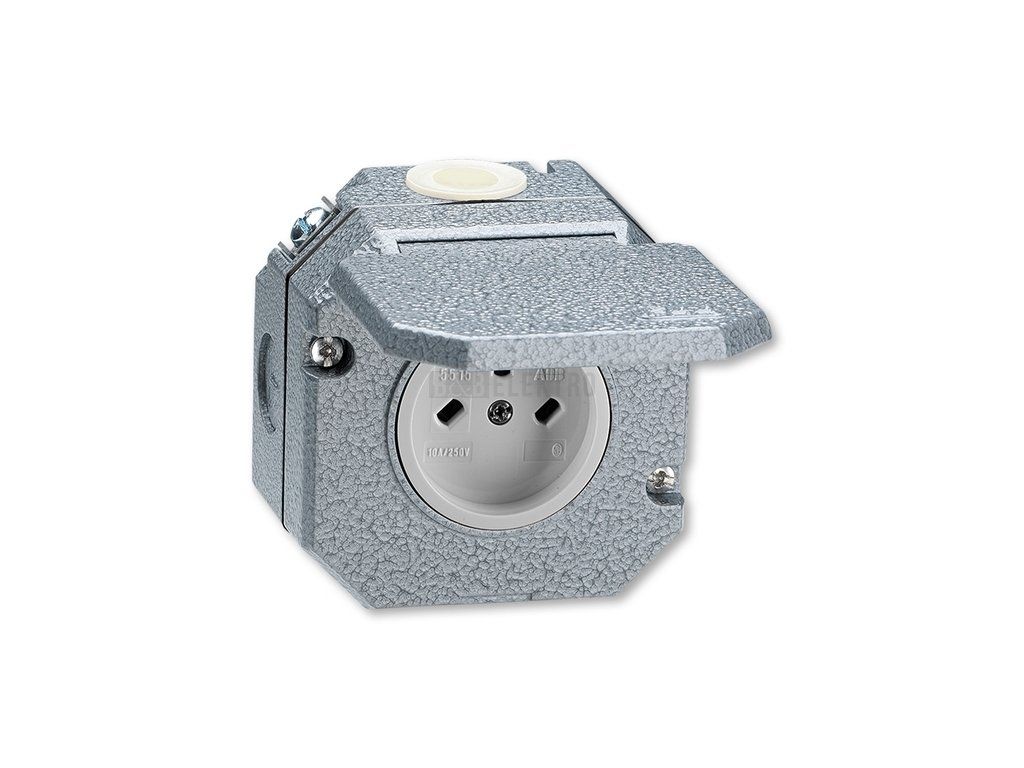 typ: Zásuvka jednonásobná IP 55, s ochranným kontaktem, s víčkem, nástěnná