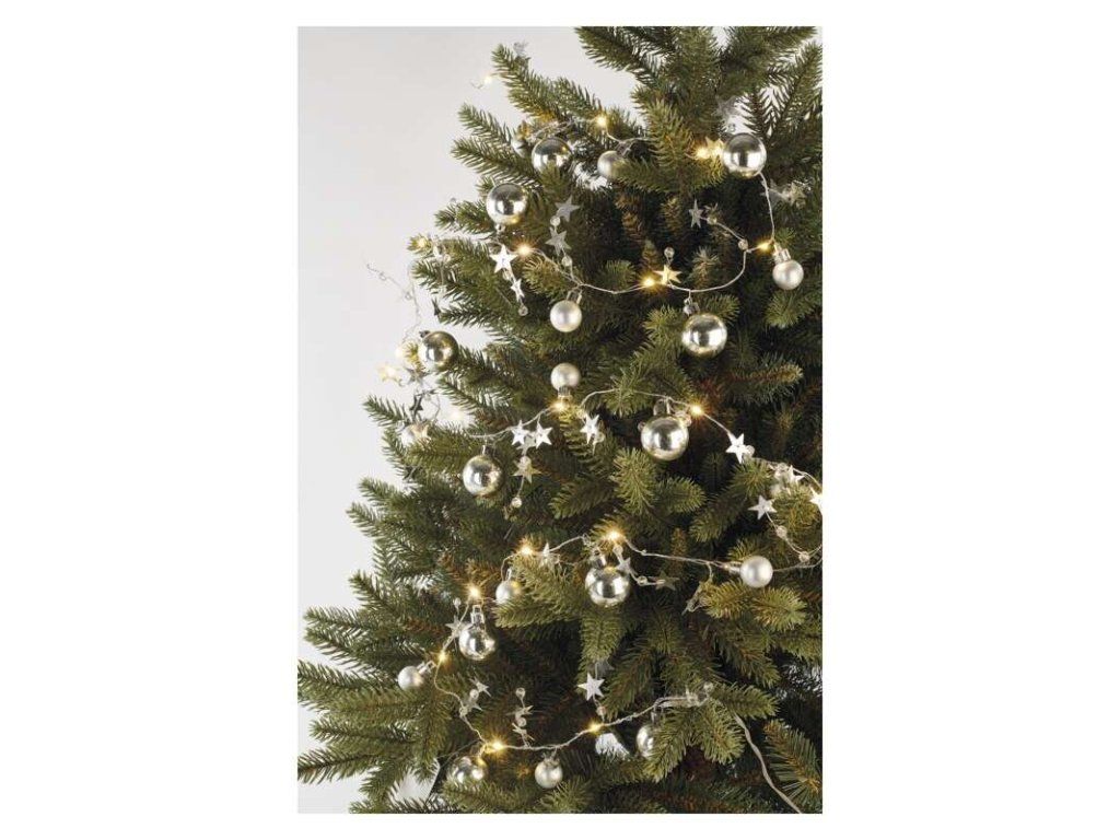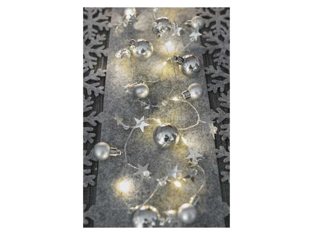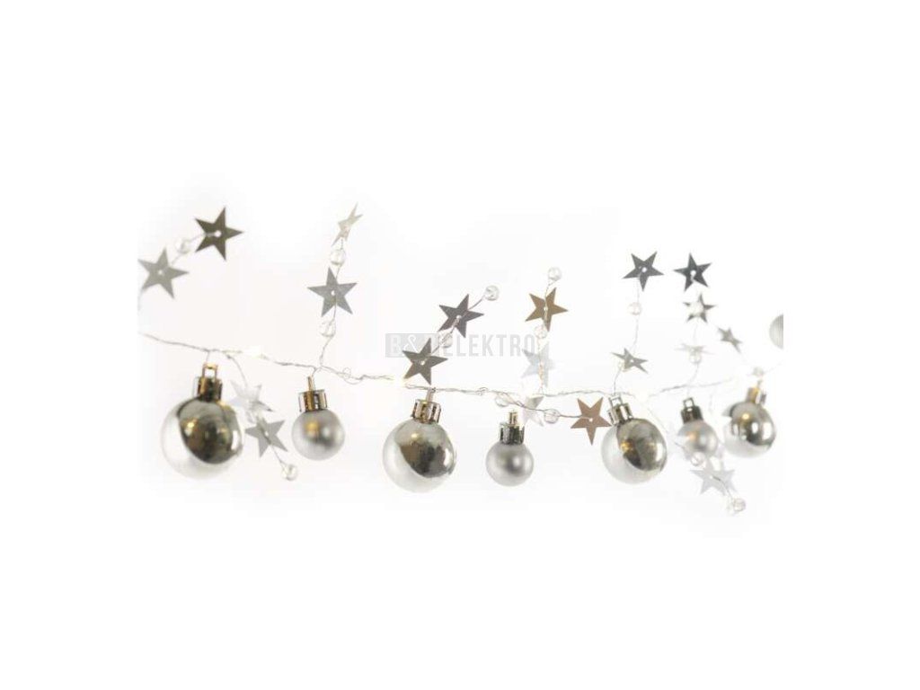Girlanda vánoční LED, stříbrné koule s hvězdami, délka 1,9m, napájení 2xAA baterie, časovač, EMOS DCGW10