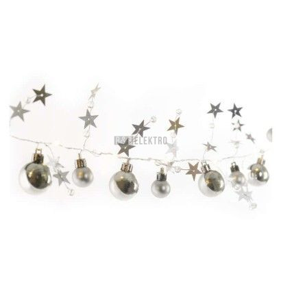 Girlanda vánoční LED, stříbrné koule s hvězdami, délka 1,9m, napájení 2xAA baterie, časovač, EMOS DCGW10