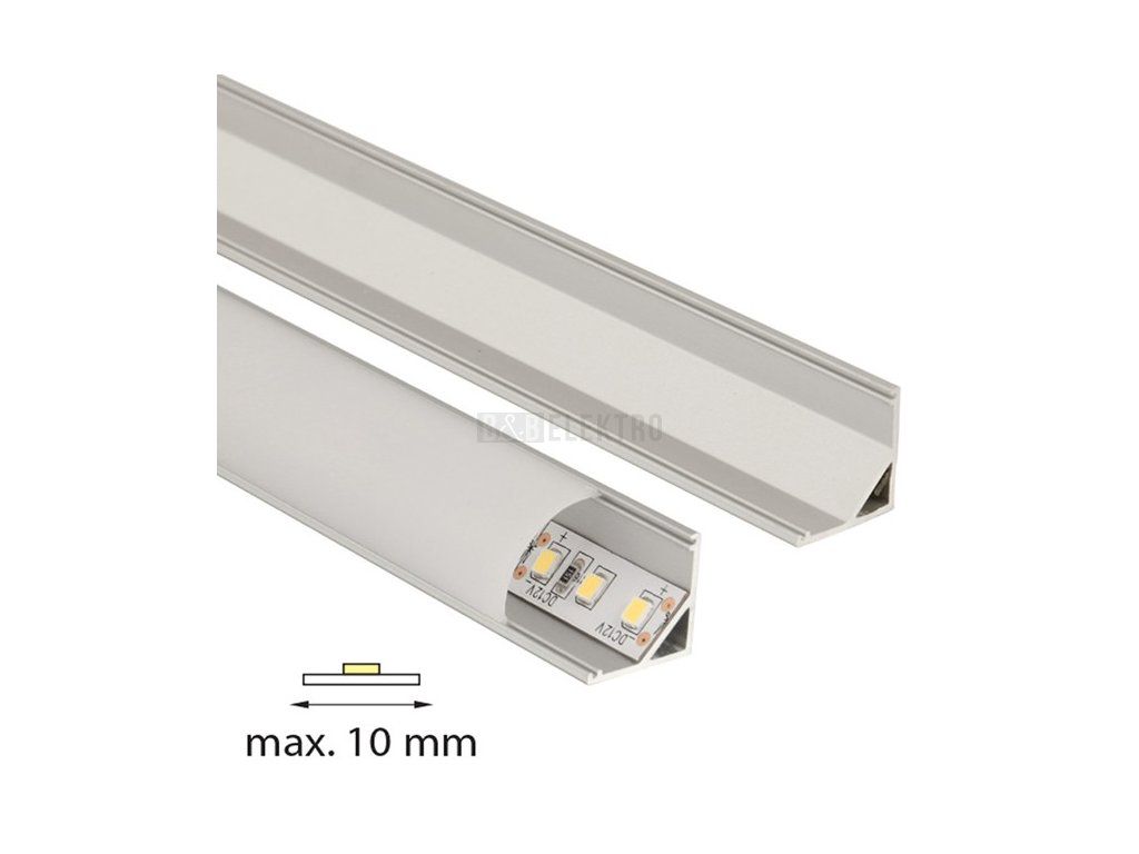 Rohový hliníkový profil pro LED pásky, rozměry průřezu cca 16x16 mm. Součástí je mléčný difuzor, který lze do profilu nacvaknout. Tento profil je určen pro krytí a chlazení LED pásků do šíře 10 mm. Upevnění k podkladu lze provést pomocí montážních úchytů, vrutů, lepidel.