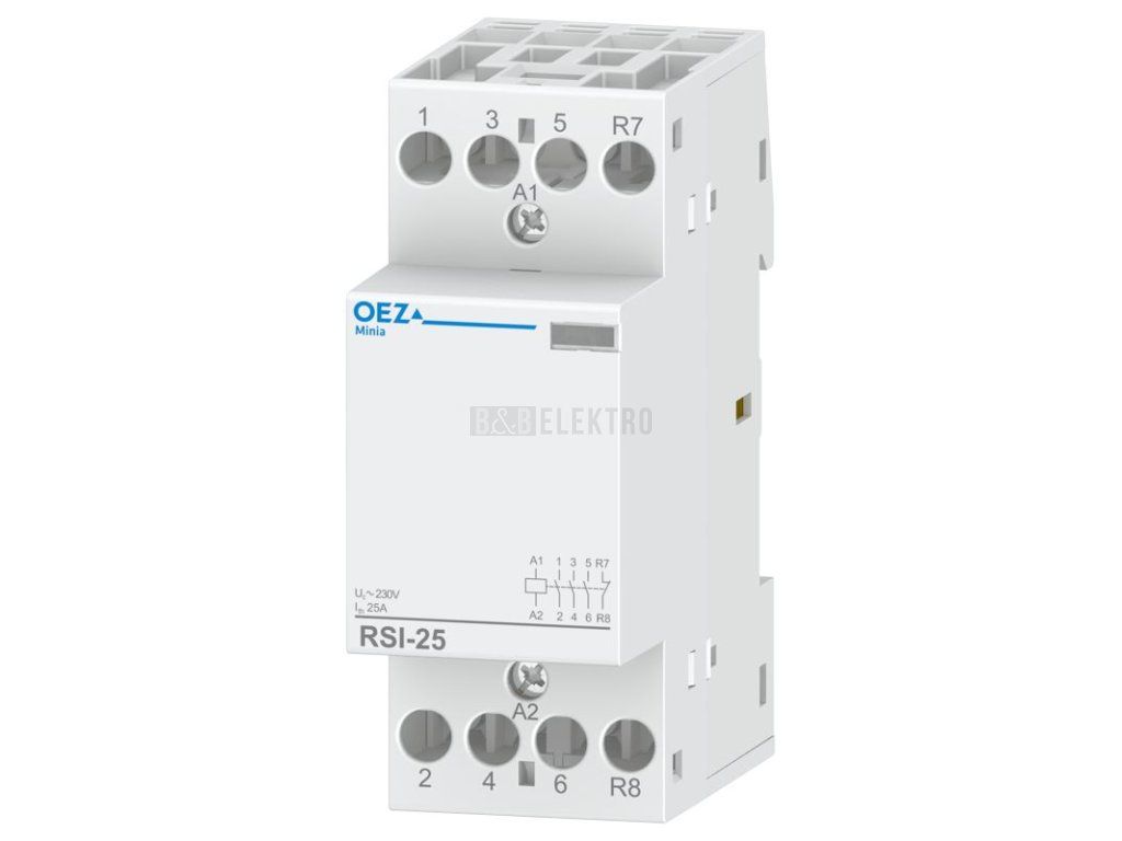 Instalační stykač OEZ RSI-25-31-A230 je určen pro spolehlivé spínání elektrických spotřebičů, jako jsou bojlery, elektrické topení, čerpadla nebo osvětlení. Díky konfiguraci kontaktů 3NO + 1NC umožňuje flexibilní ovládání různých elektrických obvodů.
