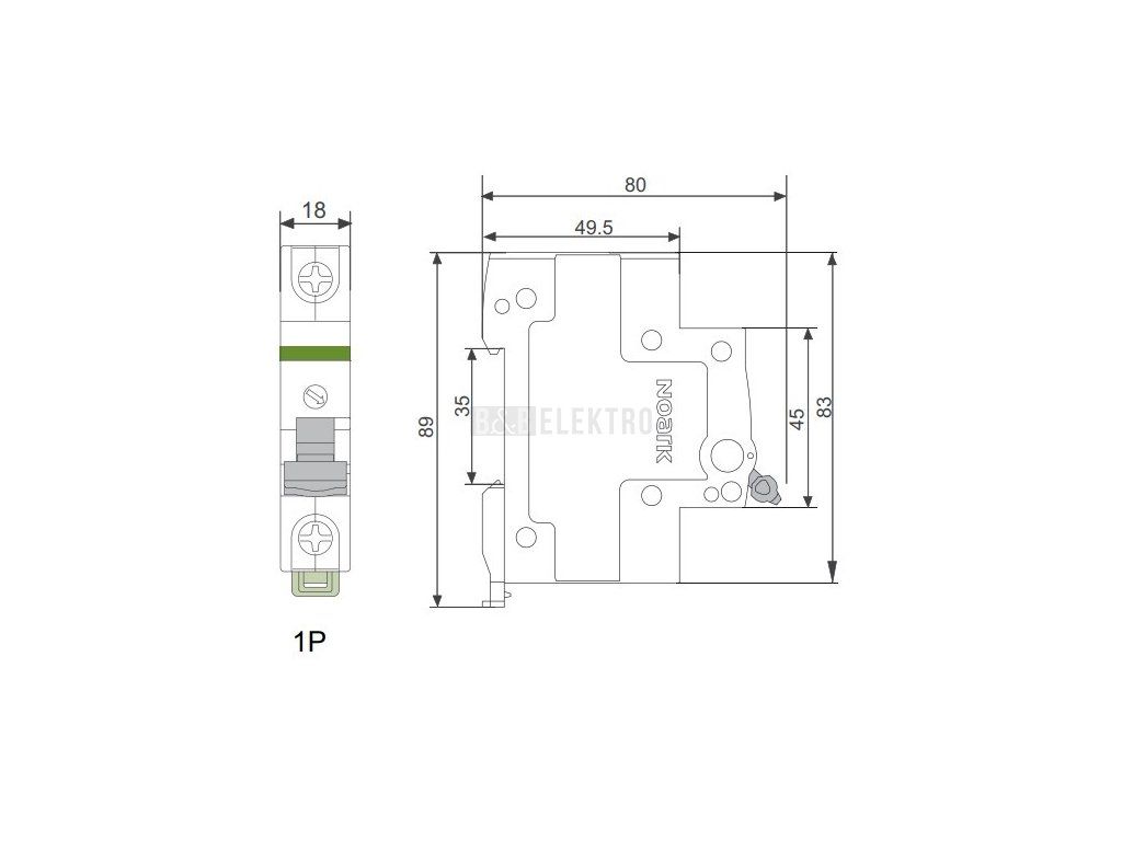 Instalační vypínač, šířka 1 modul, 1pól, 25A Ex9I125 1P 25A Noark