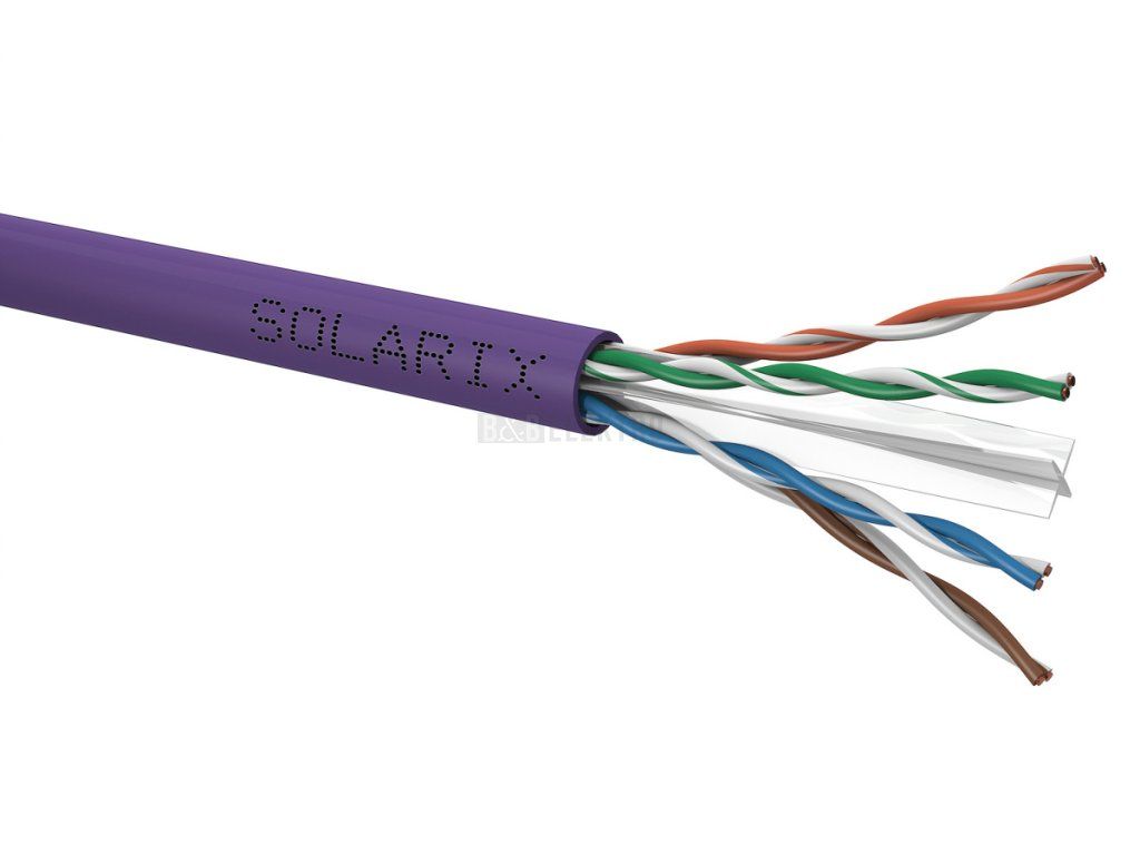 Instalační kabel Solarix s označením SXKD-6-UTP-LSOH je spolehlivý nestíněný kabel kategorie 6, který je určený pro provoz ethernetových protokolů, včetně 2.5GBASE-T a 5GBASE-T. Konstrukce kabelu je U/UTP s plastovým křížem, který zajišťuje maximální oddělení párů od sebe po celé délce kabelu. Typ pláště je LSOH s třídou reakce na oheň Dca-s2,d2,a1. Vodiče kabelu jsou vyrobeny z kvalitního měděného drátu s čistotou mědi 99,97%. Kabel bez problémů splňuje požadavky z mezinárodních standardů ISO/IEC 11801, EN 50173 a ANSI/TIA 568.2-D. Výkonové parametry tohoto kabelu byly otestovány nezávislou testovací zkušebnou FORCE TECHNOLOGY v rámci programu EC Verified, a to na nejvyšší úroveň tzv. Component Level. Certifikát je k dispozici zde na webu v záložce "Soubory ke stažení" nebo přímo na stránkách laboratoře FORCE. V případě CPR (nařízení EU č. 305/2011) je kabel testován v systému posuzování vlastností AVCP 3. Stejně jako ostatní kabely Solarix, je i kabel SXKD-6-UTP-LSOH značen metráží po 1 m v rozsahu od 0 do 305 m. Kabel je dodáván ve vysoce odolném třívrstvém leštěném kartónovém boxu, na kterém jsou uvedeny všechny nezbytné produktové informace, včetně čárových kódů, výrobní šarže, popisu a nejdůležitějších technických parametrů.