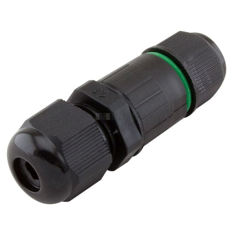 Kabelová vodotěsná spojka pro vícežilové kabely s krytím IP68. Vhodná pro venkovní použití, např. pro připojení LED reflektorů.