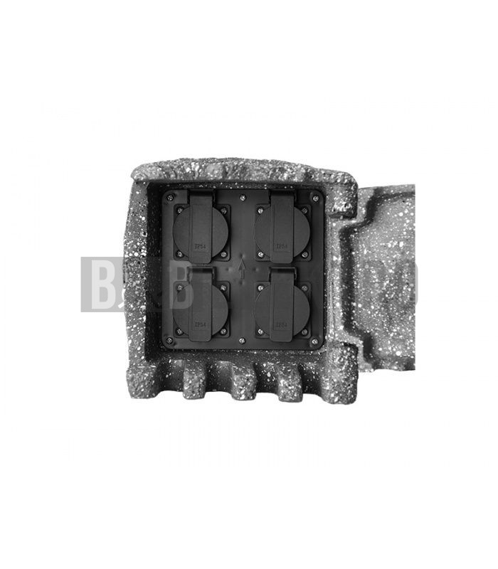 Důmyslně řešený kamenný sloupek se 4 zásuvkami je určen pro venkovní použití