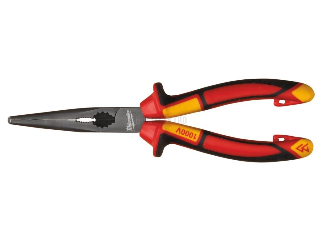 Dlouhé zakulacené a zahnuté izolované kleště Milwaukee velikosti 205 mm. Testováno pod napětím 10 000 V, certifikát do 1 000V.