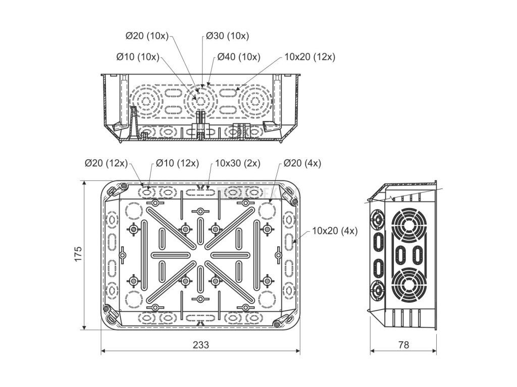 Tato prostorná instalační krabice je ideální pro pokročilé elektroinstalace, kde jsou vyšší nároky na organizaci a přístup k kabelům a trubkám. Krabice je vyrobena z vysoce kvalitního PVC a je navržena tak, aby poskytovala flexibilitu a snadnou montáž při zajištění bezpečnosti a normové kompatibility.