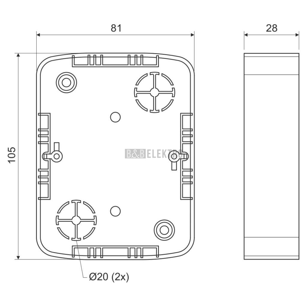 Vstupní otvory: 2 x průměr 20 mm