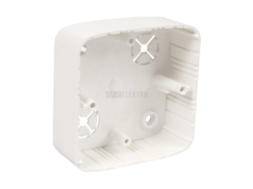 Krabice je vhodná pro montáž přístrojů vkládaných do jednonásobných rámečků Tango.