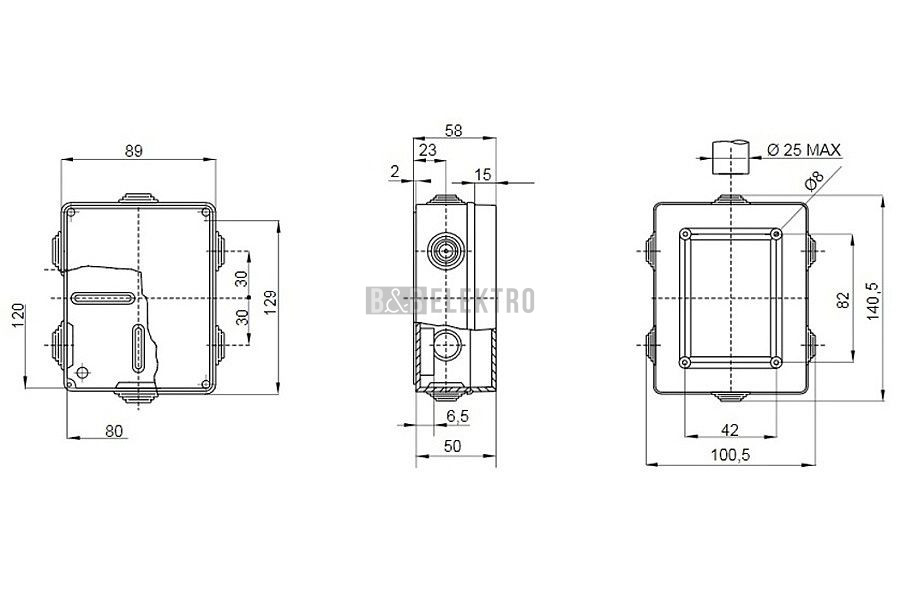 Krabice rozbočovací HP 100-L prázdná IP55 113x113x58mm šedá Spelsberg 32690001
