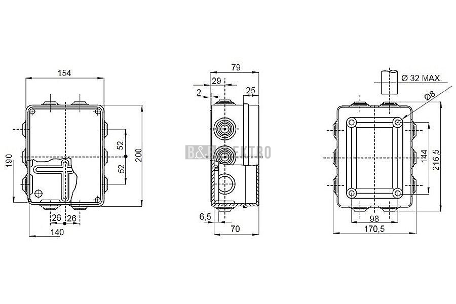 Krabice rozbočovací SCABOX IP55 190x140x70 s vývodkami 685.007