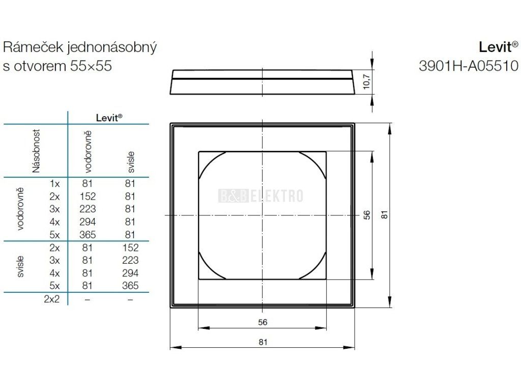 Technické parametry rámečku jednonásobného s otvorem 55x55 3901H-A05510 :