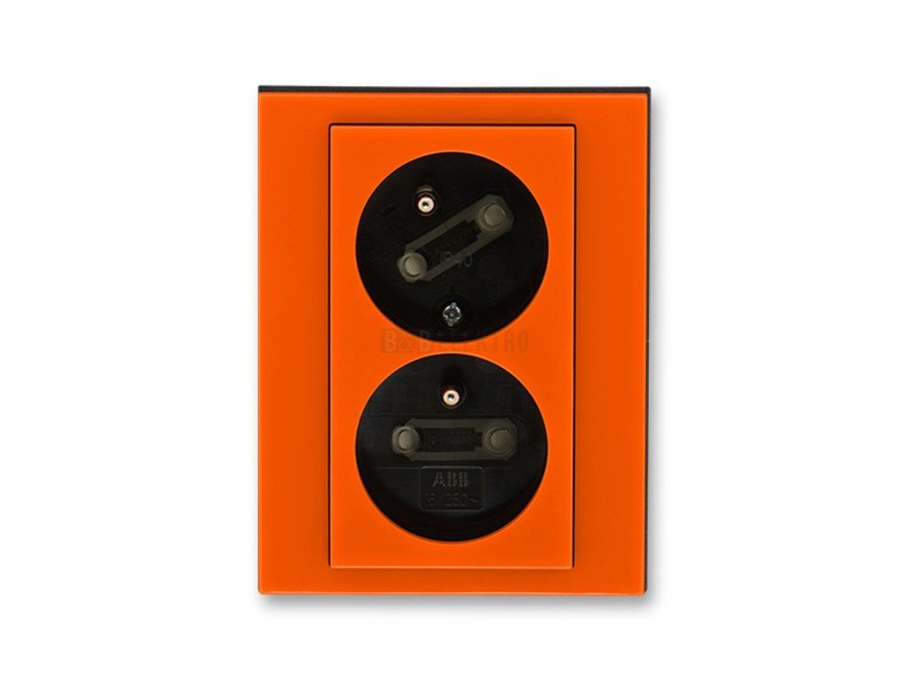 Zásuvka dvojnásobná s ochranným kolíkem a natočenou dutinou Levit® v barvě oranžová/kouřová černá od českého výrobce ABB