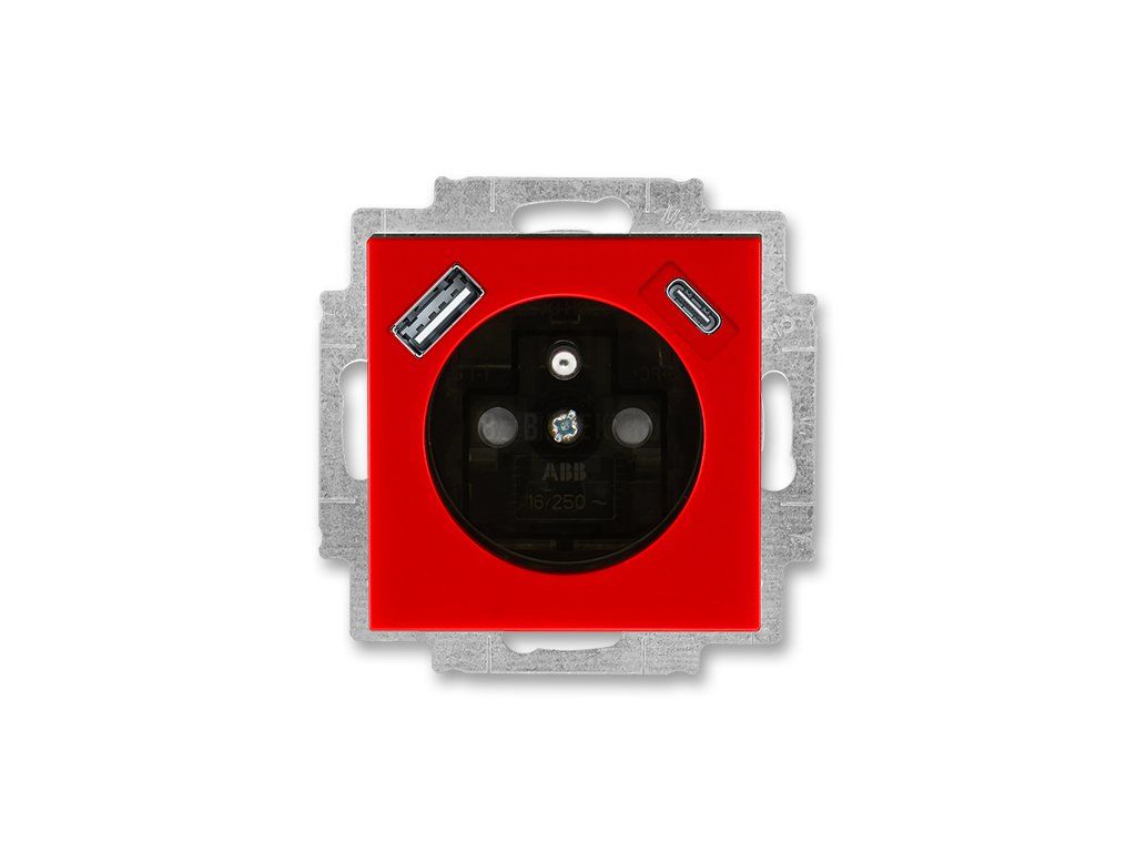 Zásuvka jednonásobná s 1xUSB-A, 1xUSB-C a ochranným kolíkem Levit® v barvě červená/kouřová černá od českého výrobce ABB