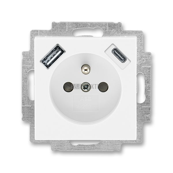 Levit® zásuvka jednonásobná s kolíkem, clonkami a nabíjením USB-A + USB-C 5569H-A32357 03 bílá/bílá ABB