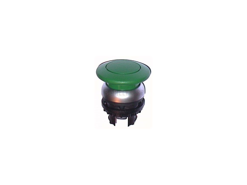 M22S-DP-G tlačítko hřibové bez aretace zelené,čelní kroužek černý