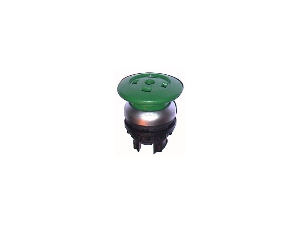 M22S-DP-G-X tlačítko hřibové bez aretace,bez středového terčíku zelené,čelní kroužek černý