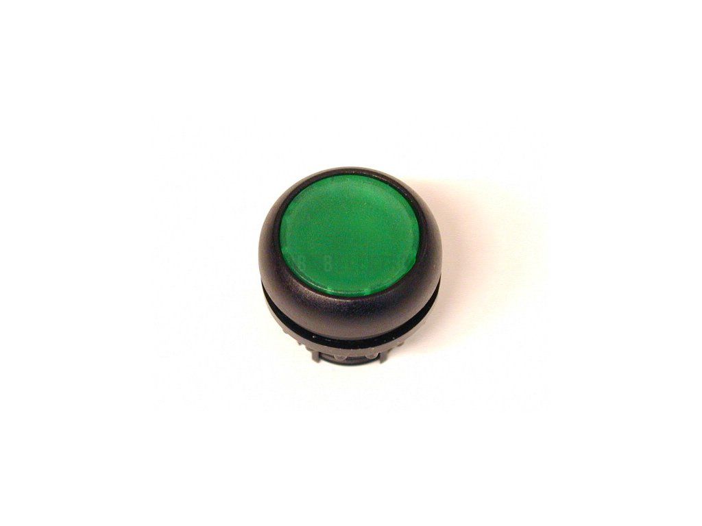 M22S-DR-G-X1 tlačítko zapuštěné zelené s popisem,s aretací,čelní kroužek černý