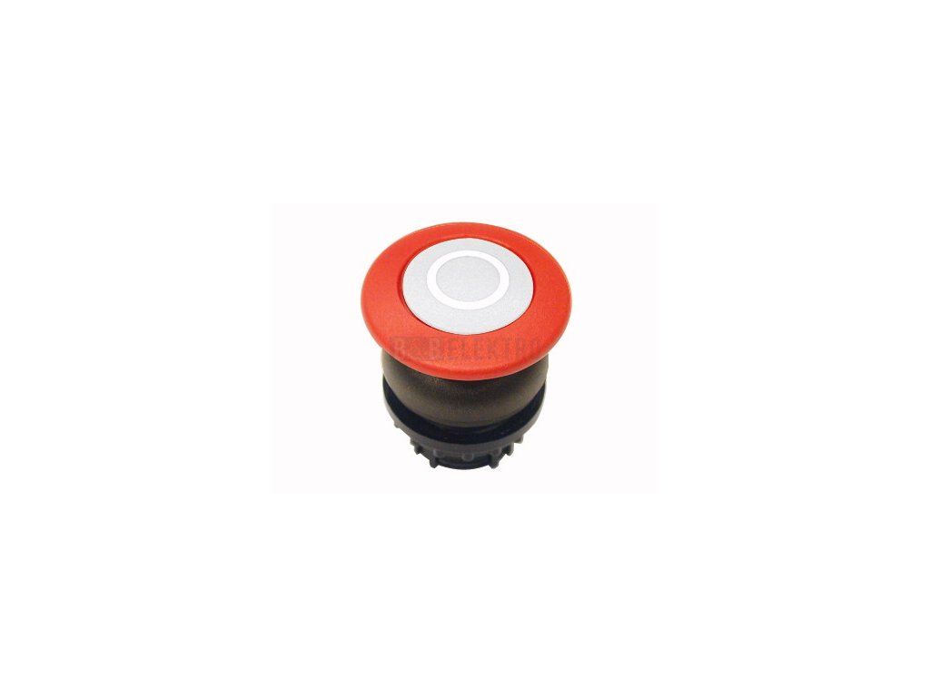 M22S-DRP-R-X tlačítko hřibové s aretací,bez terčíku,červené,černý čelní kroužek