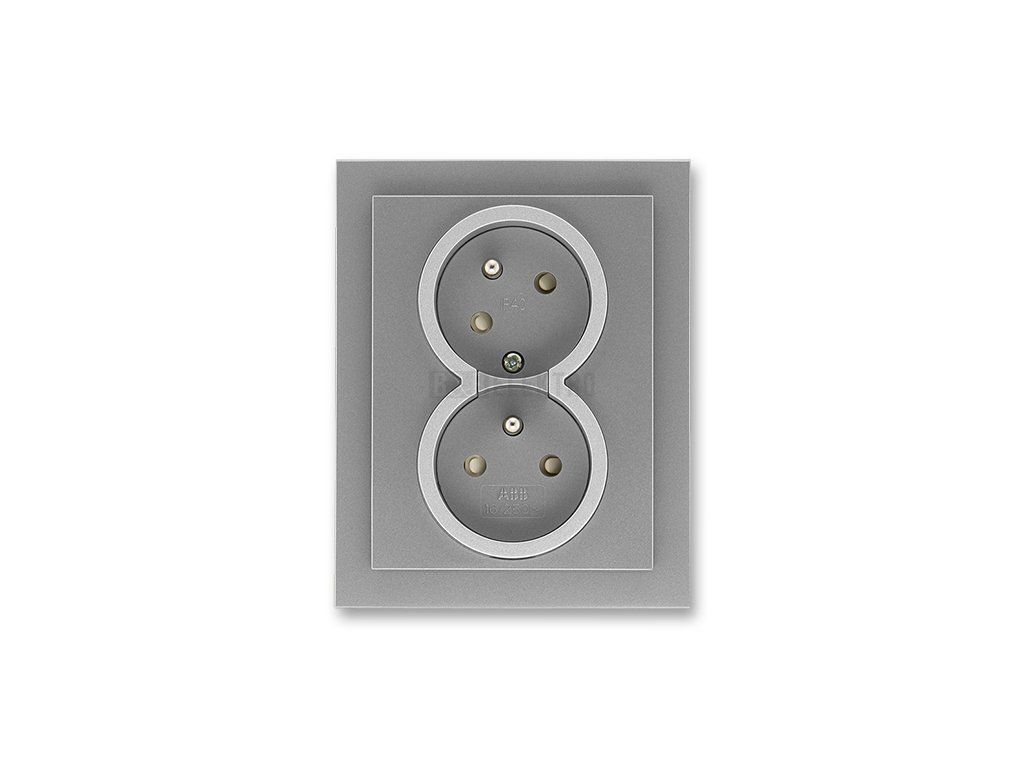 Neo® Tech zásuvka dvojnásobná s ochrannými kolíky, clonkami a natočenou dutinou 5513M-C02357 73 ocelová/titanová ABB