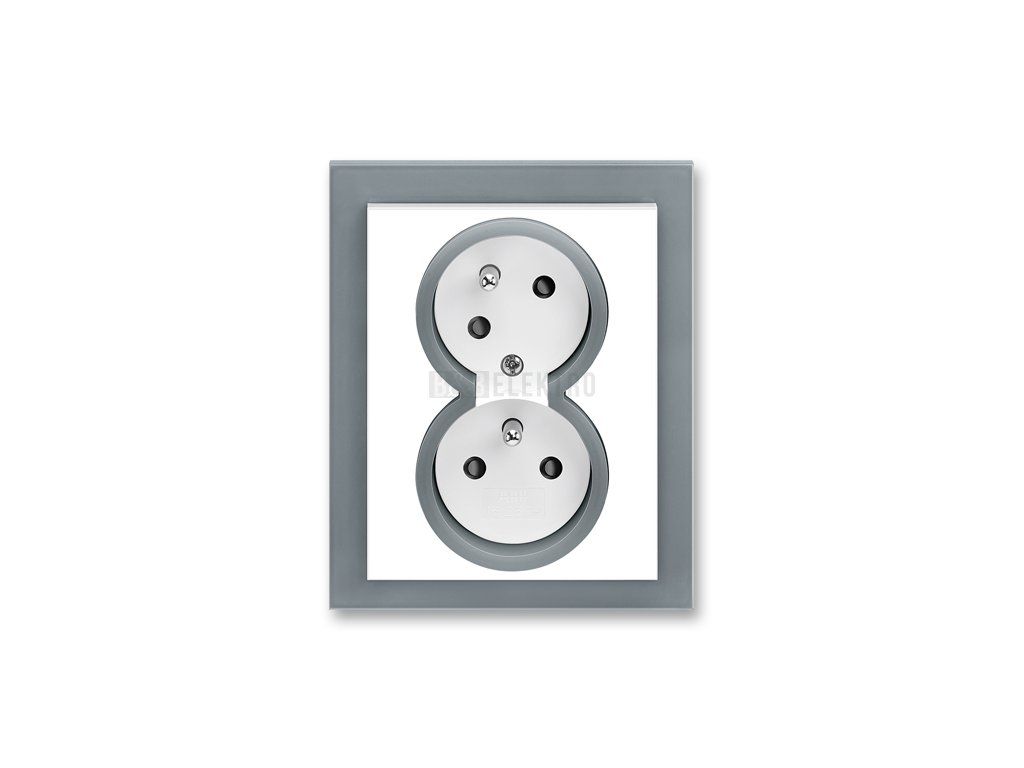 Neo® zásuvka dvojnásobná s ochrannými kolíky, clonkami a natočenou dutinou 5513M-C02357 44 bílá/ledová šedá ABB