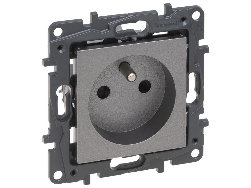 NILOÉ Step zásuvka jednonásobná 2P+T s clonkami, barva ocel, Legrand 863433