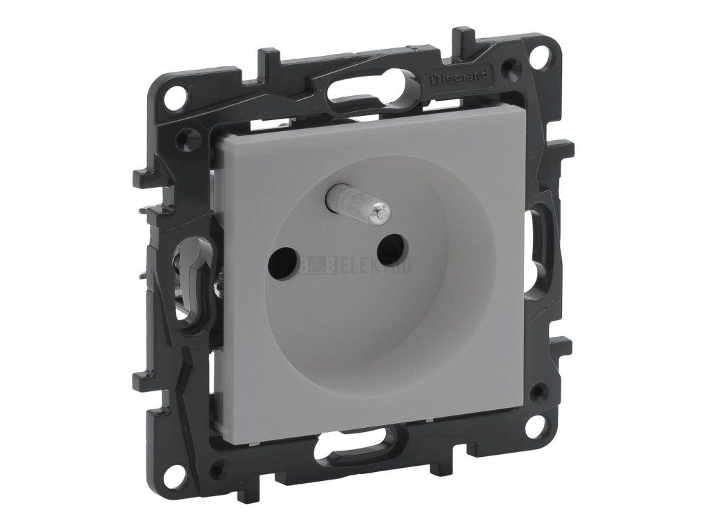 NILOÉ Step zásuvka jednonásobná 2P+T s clonkami bezšroubové svorky barva hliník Legrand 863333B