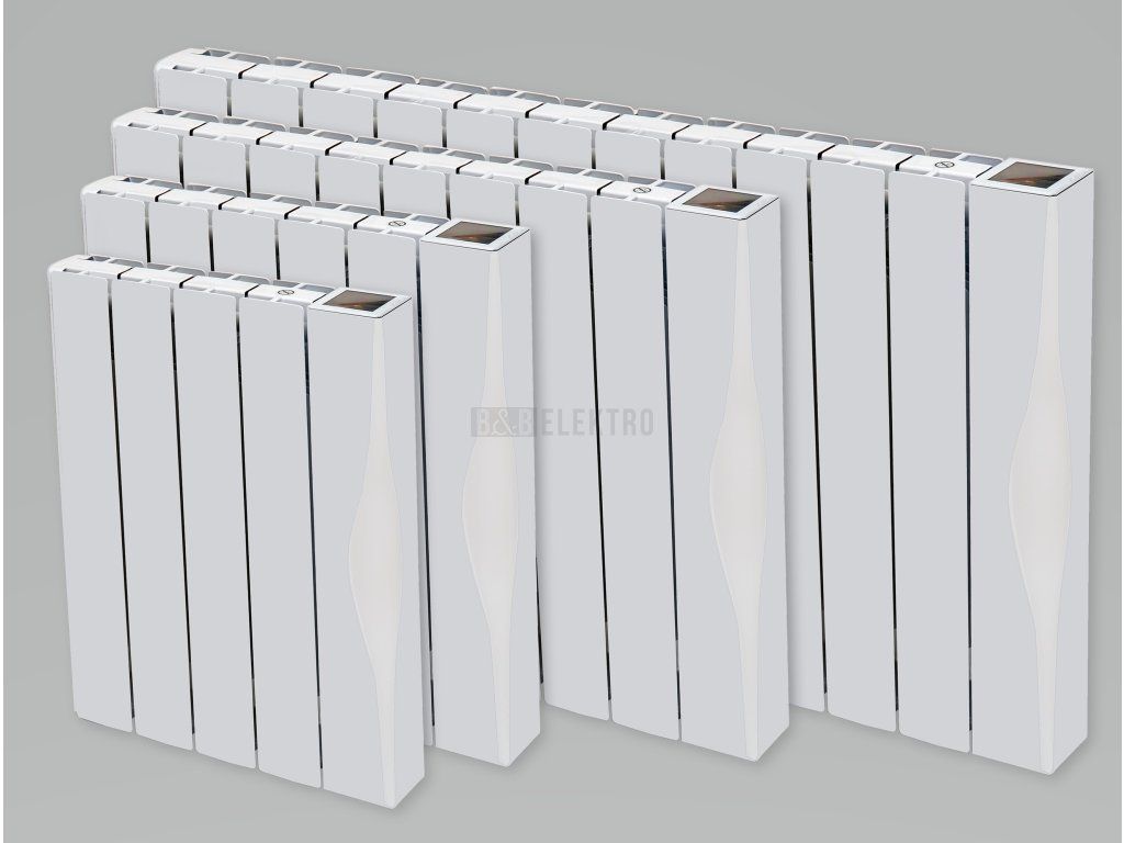 Elektrický designový olejový hliníkový radiátor IQ Line Oil WiFi s výbornými tepelně akumulačními vlastnostmi a inteligentní regulací pro úsporu nákladů na vytápění v bílém moderním žebrovaném provedení s designem klasického teplovodního radiátoru s hloubkou 80mm vhodný k vytápění místností s vestavěnou teplotní, časovou regulací a WiFi bezdrátovým ovládáním pomocí aplikace Tuya (dostupné pro iOS/Android) v mobilním telefonu, tabletu, PC a dotykovým displejem